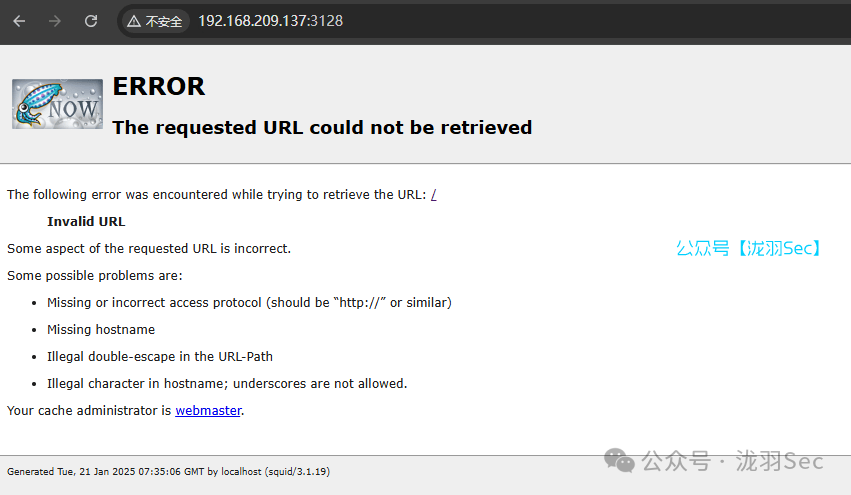 端口扫描,80端口是没有开启的,3128端口有一个http服务