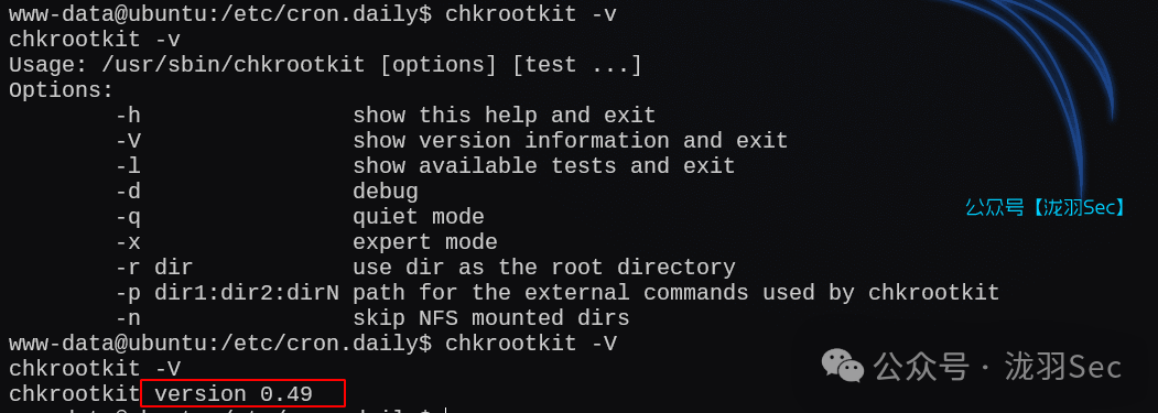 大致意思就是说让我们在tmp目录下面创建一个文件叫做 update ,这个update文件呢包含了一些恶意脚本,当我们运行chkrootkit这个工具的时候,这些恶意脚本也会跟着执行,并且是以root身份执行的(它是计划任务,会定时执行)