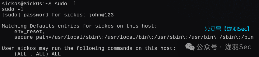 有了密码那么就直接sudo,可以看到是所有的东西都可以执行sudo,那么就简单了