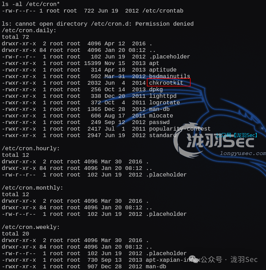 这个命令就是说查看所有和计划任务有关的所有内容,发现了一个计划任务,chkrootkit命令