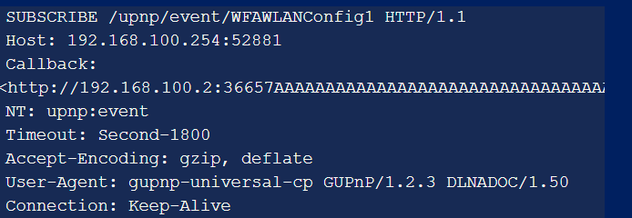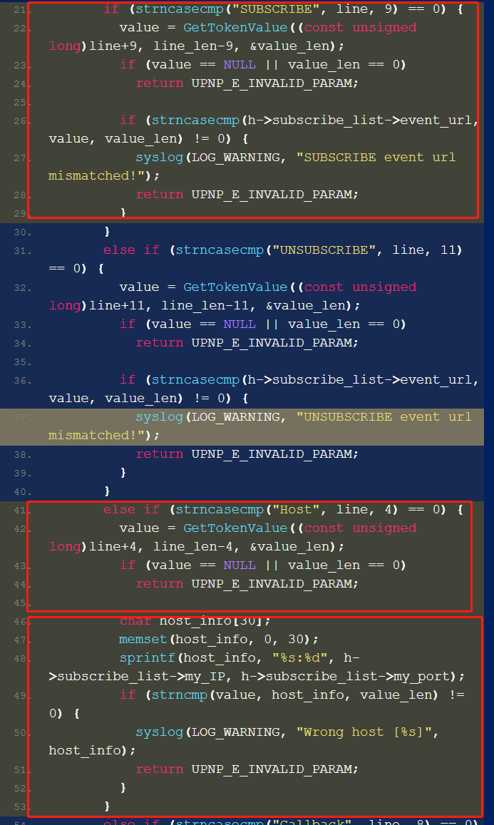 ParseSUBSCRIBEPacket函数解析HTTP请求行。它首先验证URL是否是有效的事件URL,检查主机标头是否对应于自己的IP和端口,最后通过调用GetIPandPortandCallBack从回调标头值中提取IP和端口号。