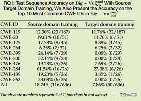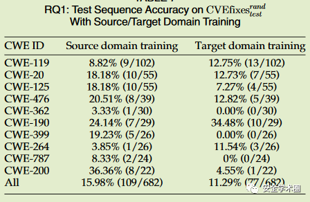 RQ1:仅使用bug修复数据集或者漏洞修复数据集训练的准确性是多少?