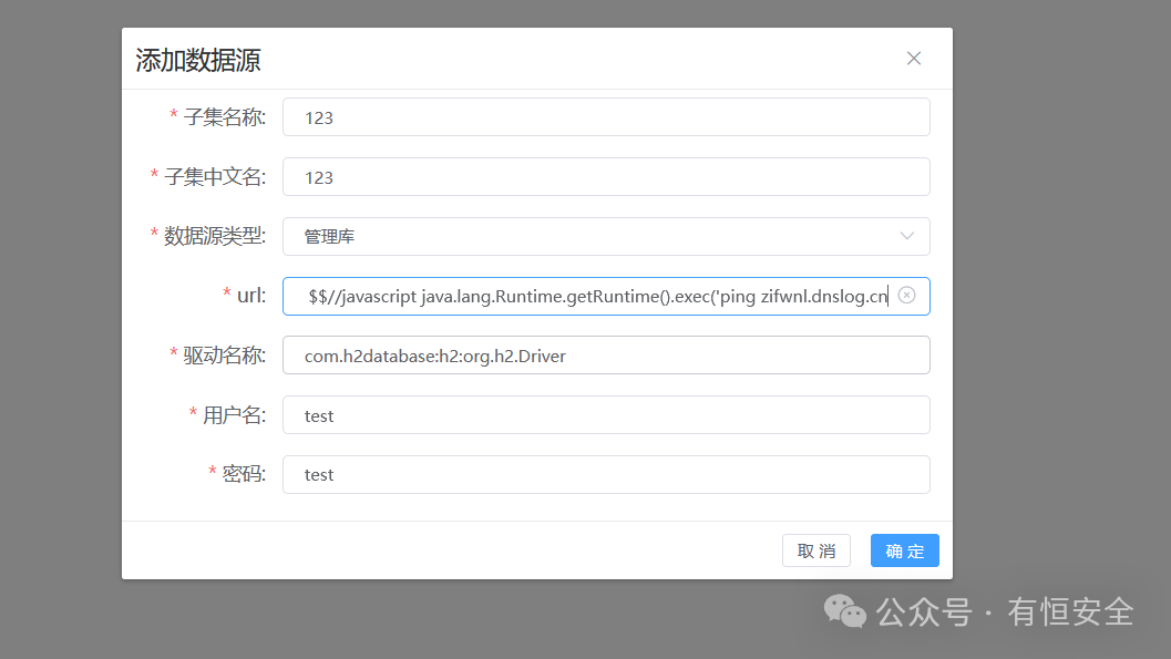 先试试打h2不出网利用链。该利用链需要对方服务器导入了h2依赖包才能打。执行ping dnslog命令