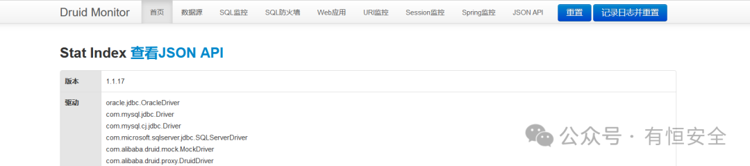 刚好bp插件帮我扫到了druid未授权漏洞,可以通过druid未授权看看服务器里的组件有什么,就可以判断打什么链了。