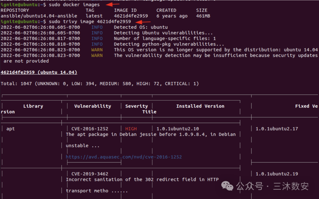 ****正如我上面所描述的,我们可以使用 trivy 来扫描多个平台之间的安全漏洞。