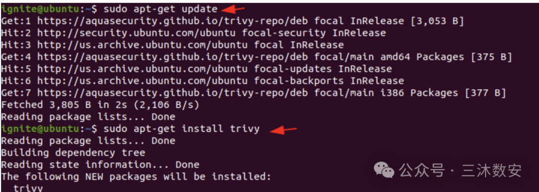 安装非常简单。按照下面给出的命令从你的 ubuntu 机器上的官方存储库安装 Trivy。