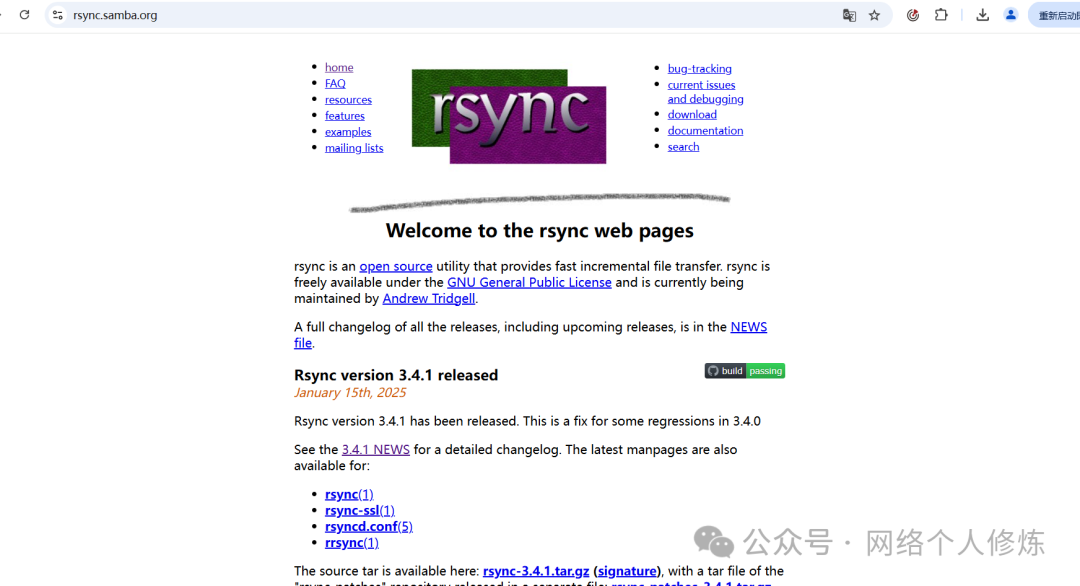 下载 Rsync 3.4.1 源代码: