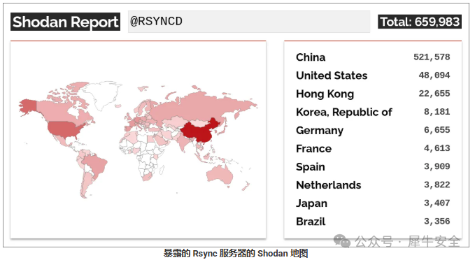 BleepingComputer 进行的 Shodan 搜索显示,有超过 660,000 个 IP 地址具有暴露的 Rsync 服务器。