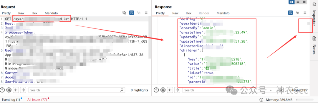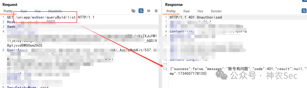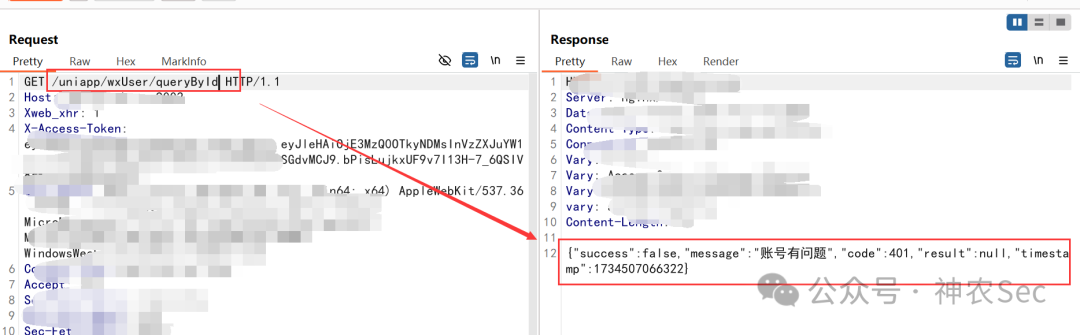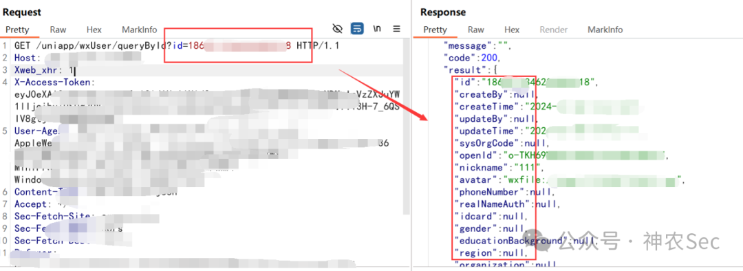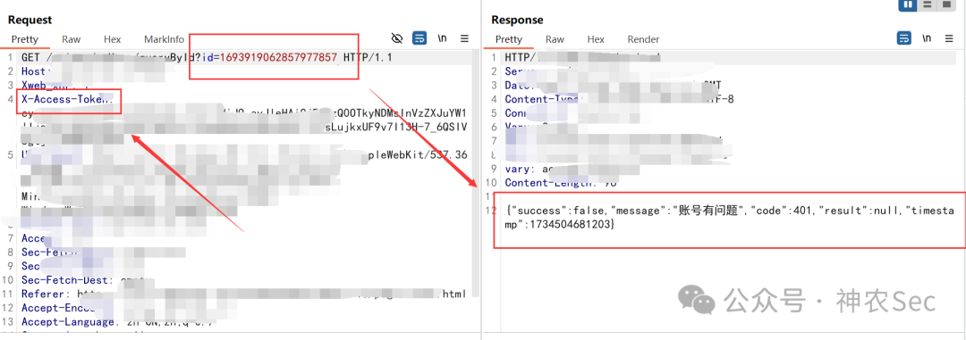 然后我这里就替换到刚才的查询敏感信息的接口,去替换那个id值,但是发现不行,后面才知道这里对X-Access-Token值做了校验,所以这里我们没有权限去访问