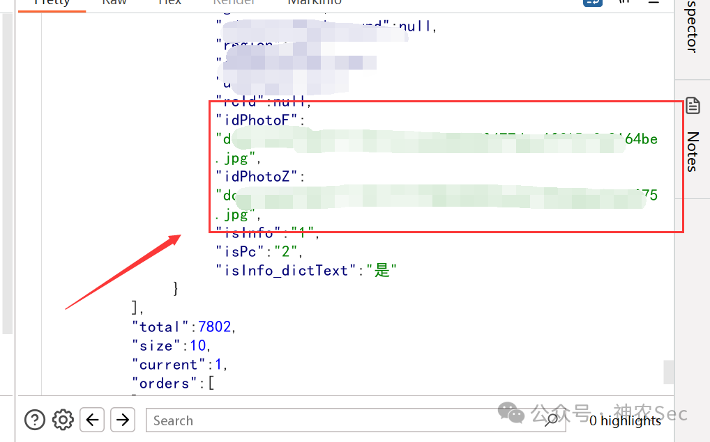 这里看到这个数据包,利用id(这里是我自己登录时候的id)可以回显出一些三要敏感的信息,比如身份证、姓名、手机号等信息