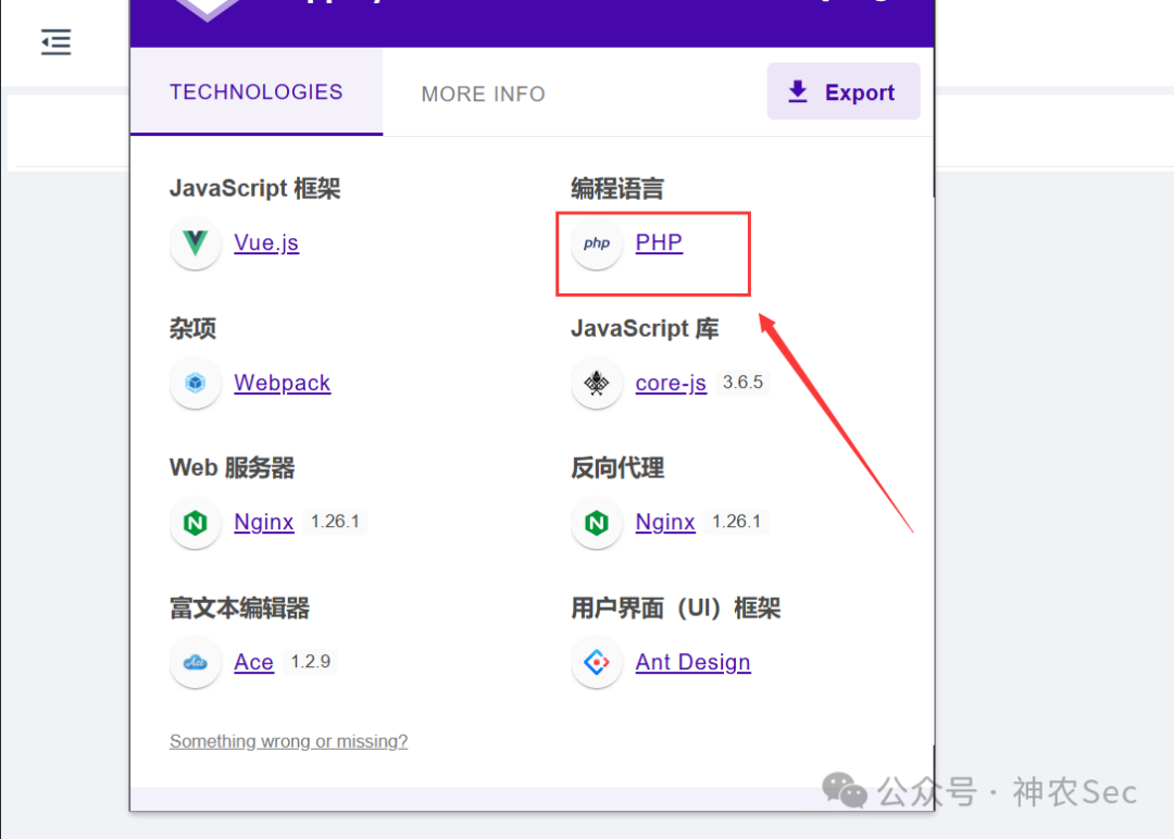 那么下面我们就可以尝试上传木马,然后进行打下getshell,传马之前,我们得先看这个站点是什么语言写的,使用插件看到是php语言写的网站