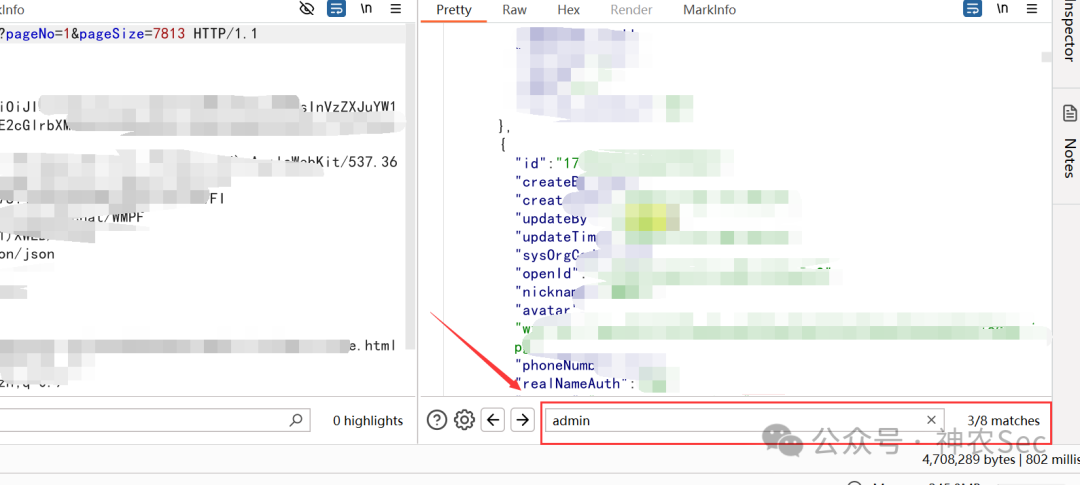 既然可以水平越权,那么我们是不是可以尝试下找到admin管理员权限的用户user数据,然后进行替换越权登录呢,下面就来找下,发现确实存在admin管理员权限的用户,然后就是按照上面的越权方式就可以成功登录到管理员的用户了
