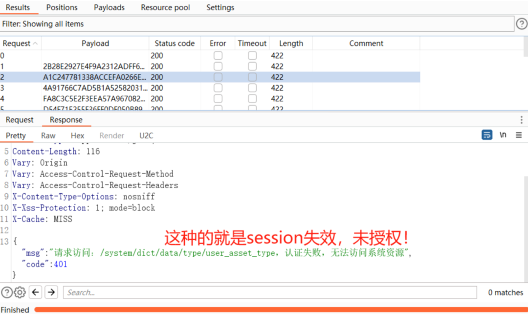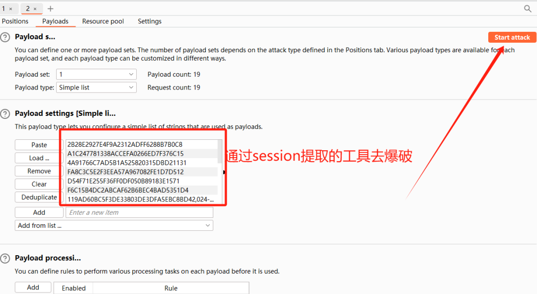 获得了session和路径,下面就需要你去抓包,然后去爆破,看看哪个session是有效的,这里面大部分都是无效的,如果有一个是有效的,那你就直接进后台了,或者直接使用后台接口了。