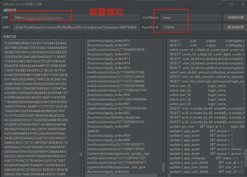 下载这个工具,填写url和账号密码,如果是未授权访问的druid,可以不用填写账号密码。