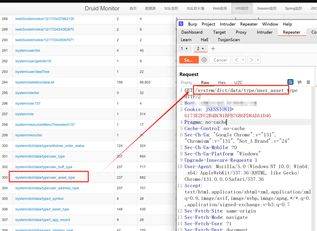 像这种Druid后台,他只是一个网站的小组件,一般还有另一个真正的网站,需要你去找一下,如果实在找不到,就直接使用Druid监控中记录的接口,拼接访问一下,也是可以的。然后再填写session,看看session是否有效!