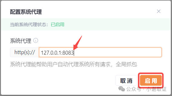 2.这边监听端口设为8083 然后直接点击“启用”即可