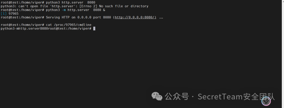 python3 -m http.server 8080 &cat /proc/97965/cmdline