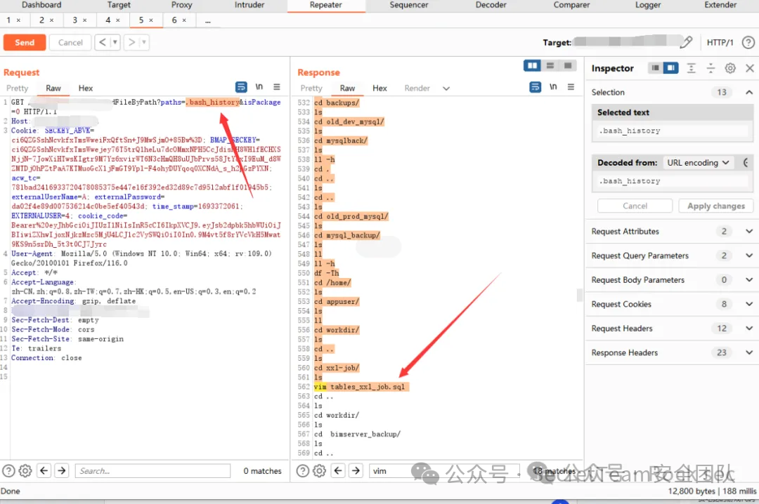 由于对方是Linux,我们可以通过读取history文件查看是否有可利用的敏感信息。