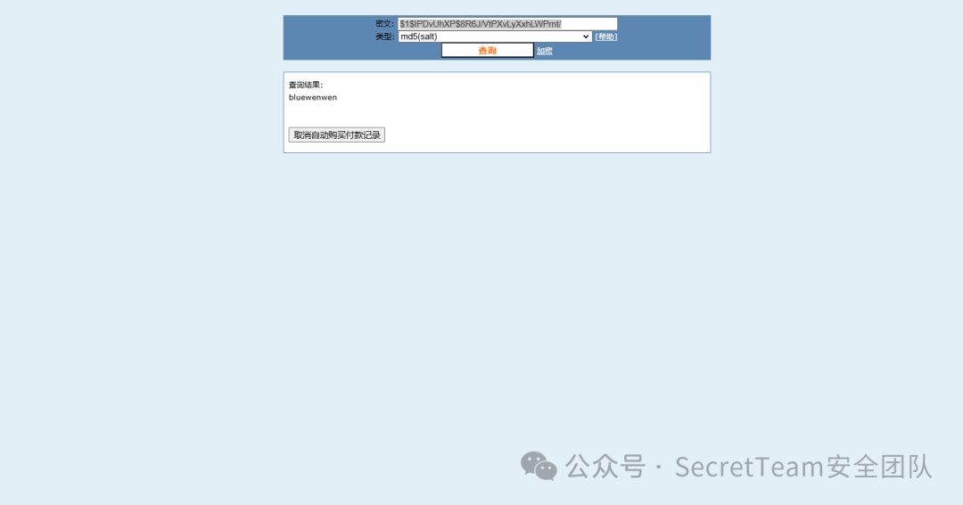 这样的密码,我们可以直接在cmd5中进行解密,解密方法为:md5(salt)