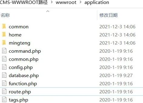 /application文件夹内容如下,参数m可以指定访问的文件夹名称,这里有common、home、mingteng都可以访问下面的文件和对应方法