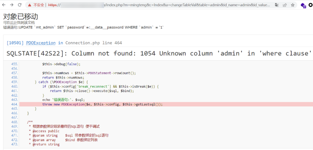 对照down下来的sql样例文件,构造一个类似的修改数据库功能路径,SQL语句执行是没有权限验证的。这里构造的第一步table为存在的表名,id_name设为不存在的键值