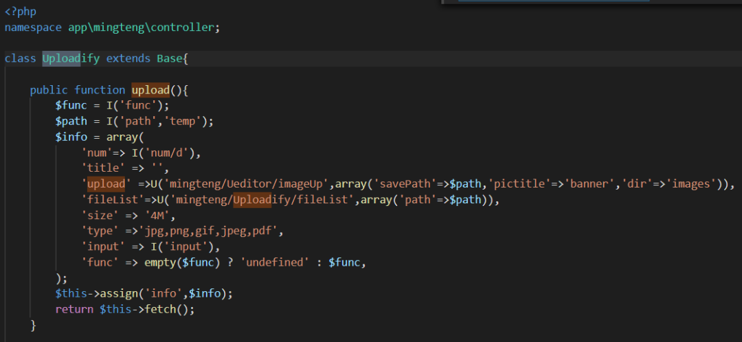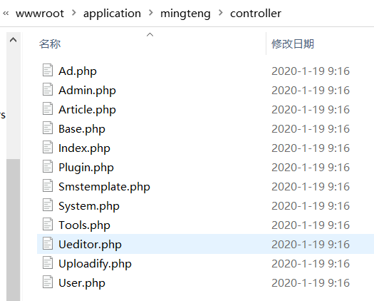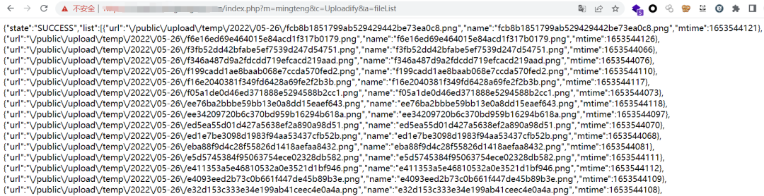 请求传参m=mingteng&c=Uploadify&a=fileList,调用fileList方法为查看temp目录下的所有文件