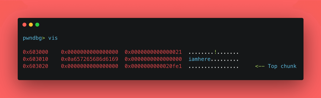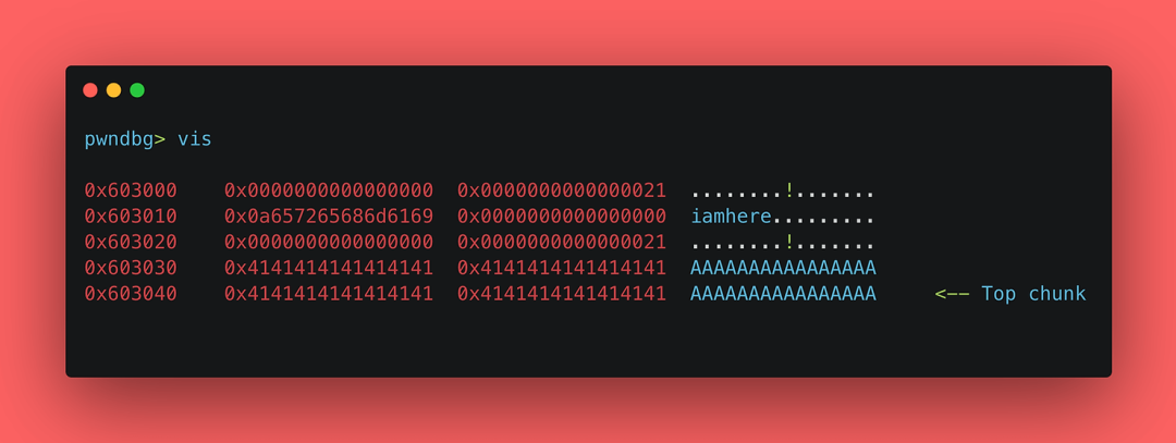 在上述操作中,我们减去 0x20 是为了应对堆块元数据