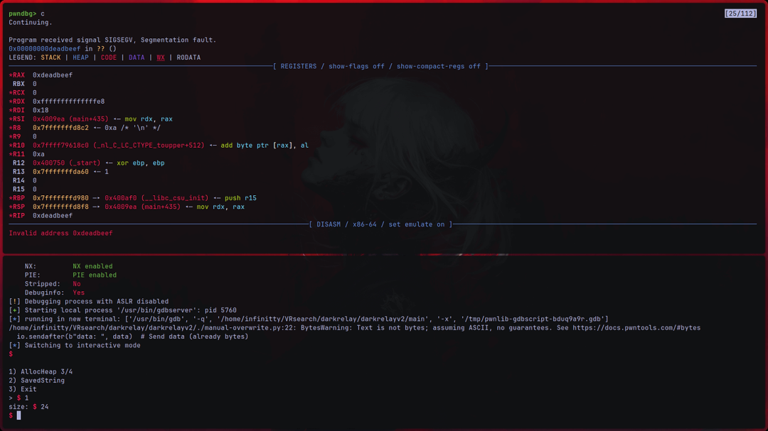 在获取堆地址和目标变量地址后,我们可以进行内存分配和溢出操作