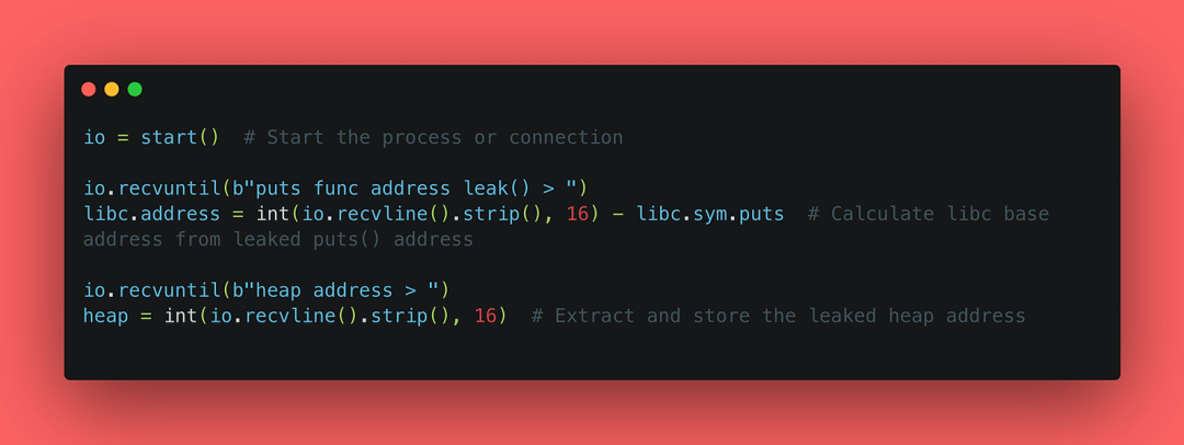 在进行内存操作之前,我们需要收集程序当前状态的关键信息,包括泄漏内存地址和初始化必要变量。