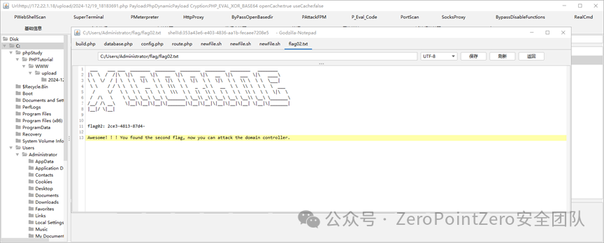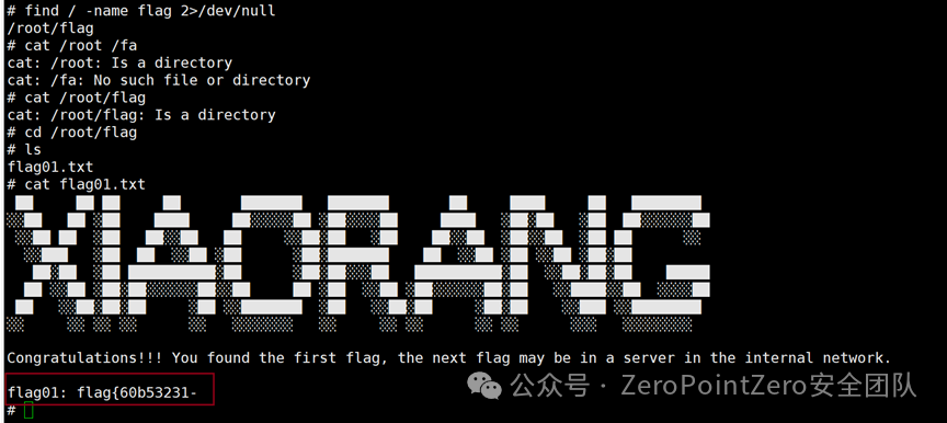 获取第一部分flag: flag{60b53231-,题目又提示下一部分在网络中,那说明内网存在其他机器
