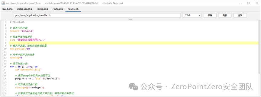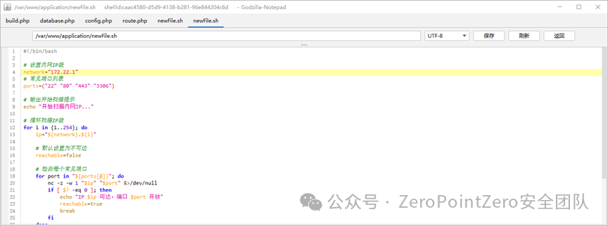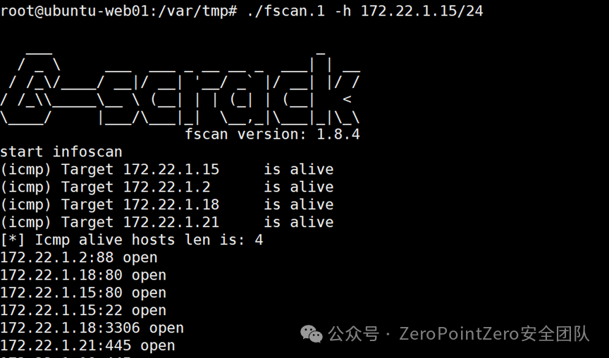 开始想通过编写了一些sh脚本探测内网,结果发现无法探测,后面老实了fscan一把唆: