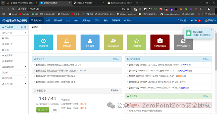 访问18oa,发现是信呼oa且存在弱口令:admin/admin123
