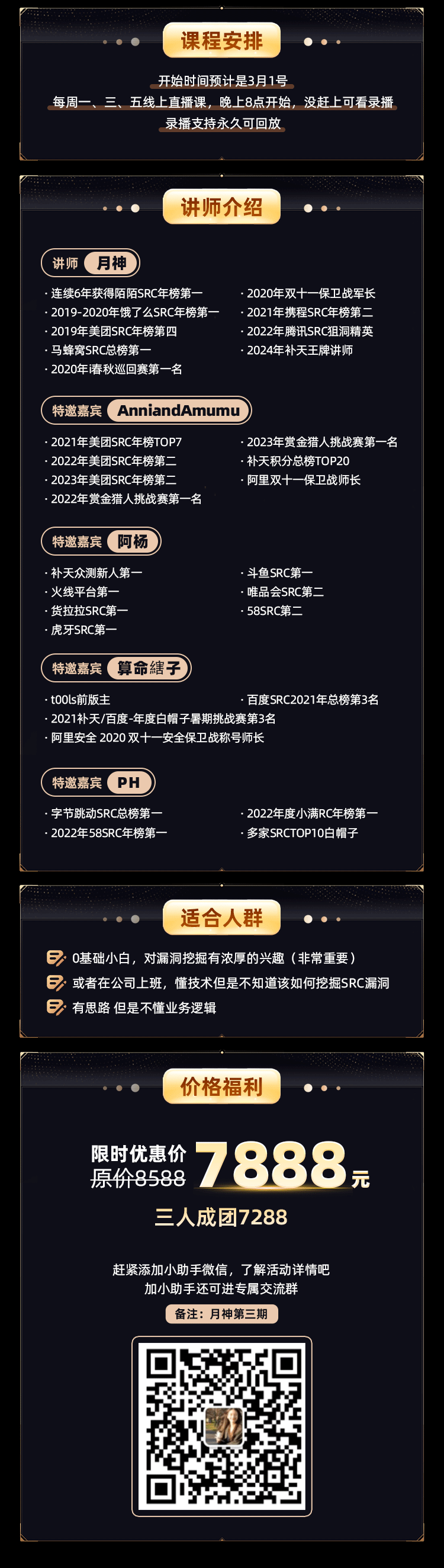 希望通过这门课程,能让更多开发者理解“漏洞为何发生”,让更多防御者学会“比攻击者多想一步”。