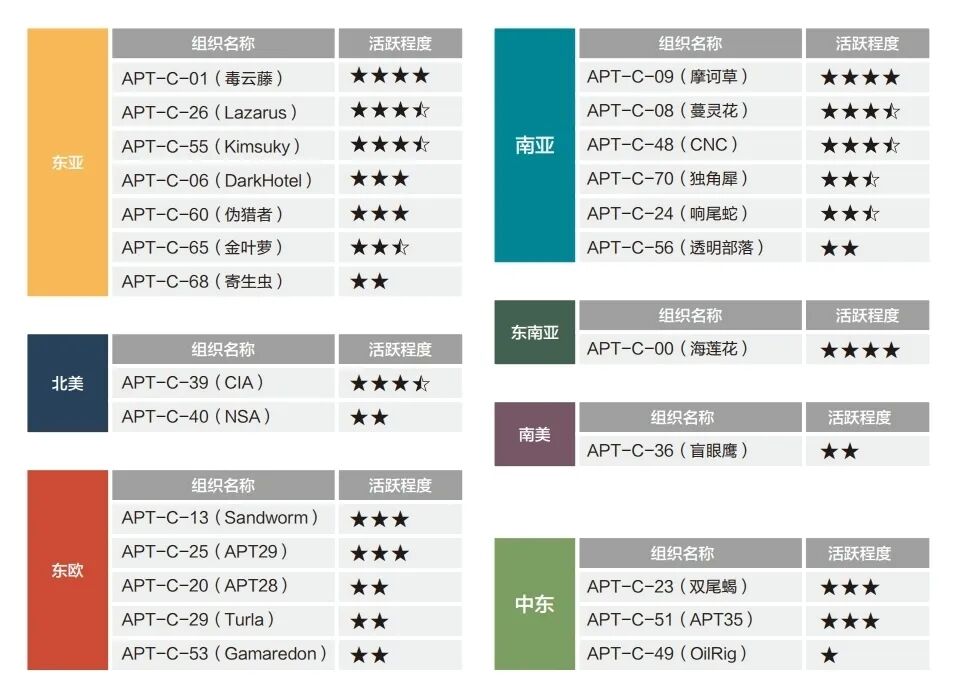 在地区冲突背景下,针对国防军工相关目标的网络攻击实现角色升级,主要围绕航空工业、航天工业、船舶工业、兵器工业等相关目标展开。