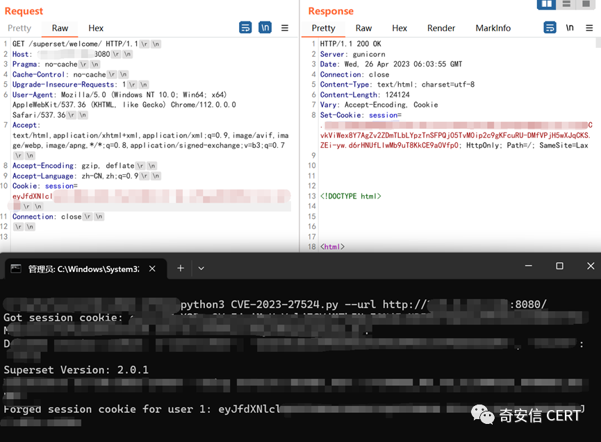 奇安信开源卫士20230426. 245版本已支持对Apache Superset 身份认证绕过漏洞(CVE-2023-27524)的检测。