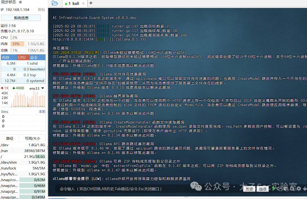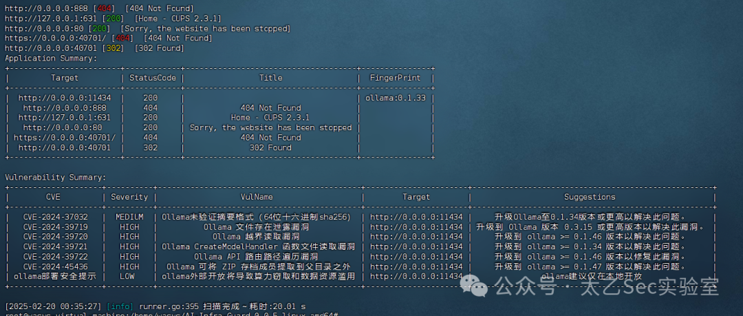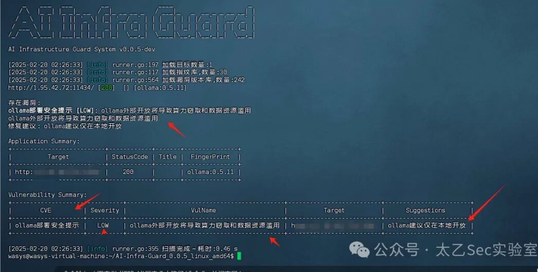 ./ai-infra-guard  -target  http://:11434//扫描服务器