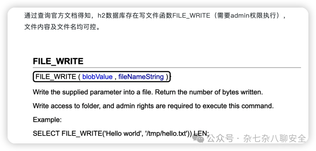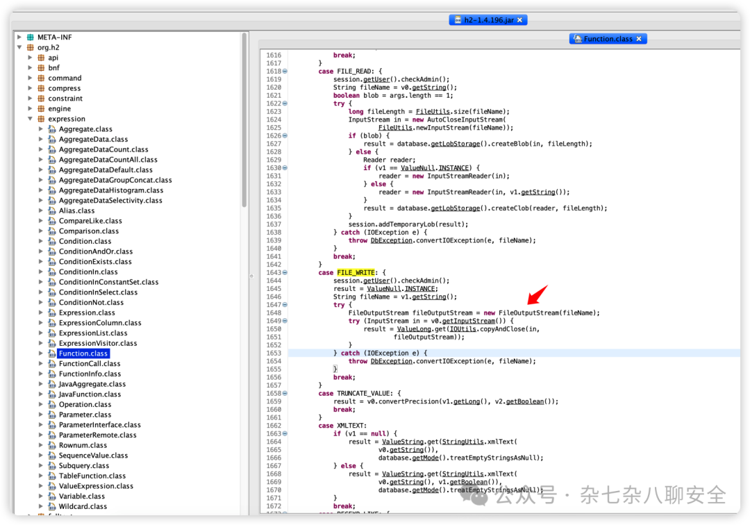 FILE_WRITE是在h2包中的org.h2.expression.Function: