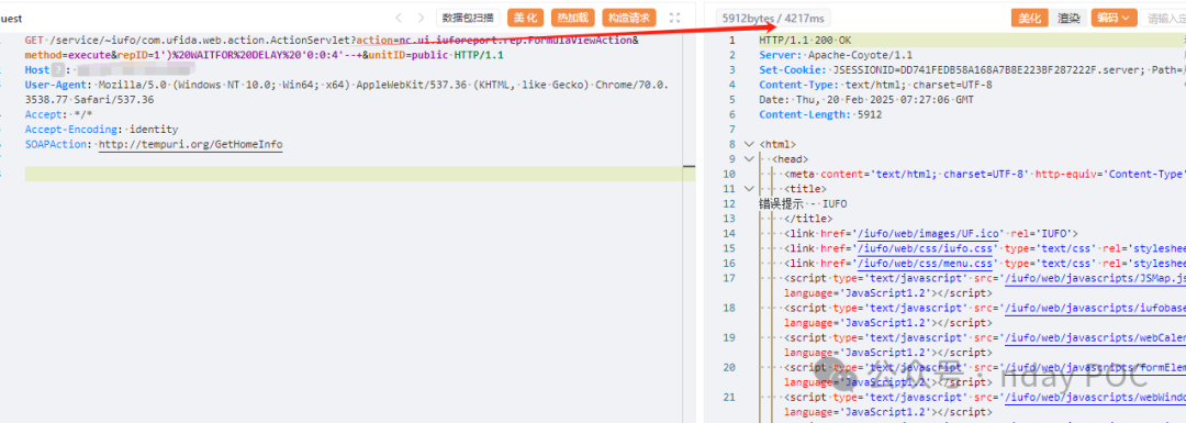 用友NC /service/~iufo/com.ufida.web.action.ActionServlet 接口处存在SQL注入漏洞,攻击者通过利用SQL注入漏洞配合数据库xp_cmdshell可以执行任意命令,从而控制服务器。经过分析与研判,该漏洞利用难度低,建议尽快修复。