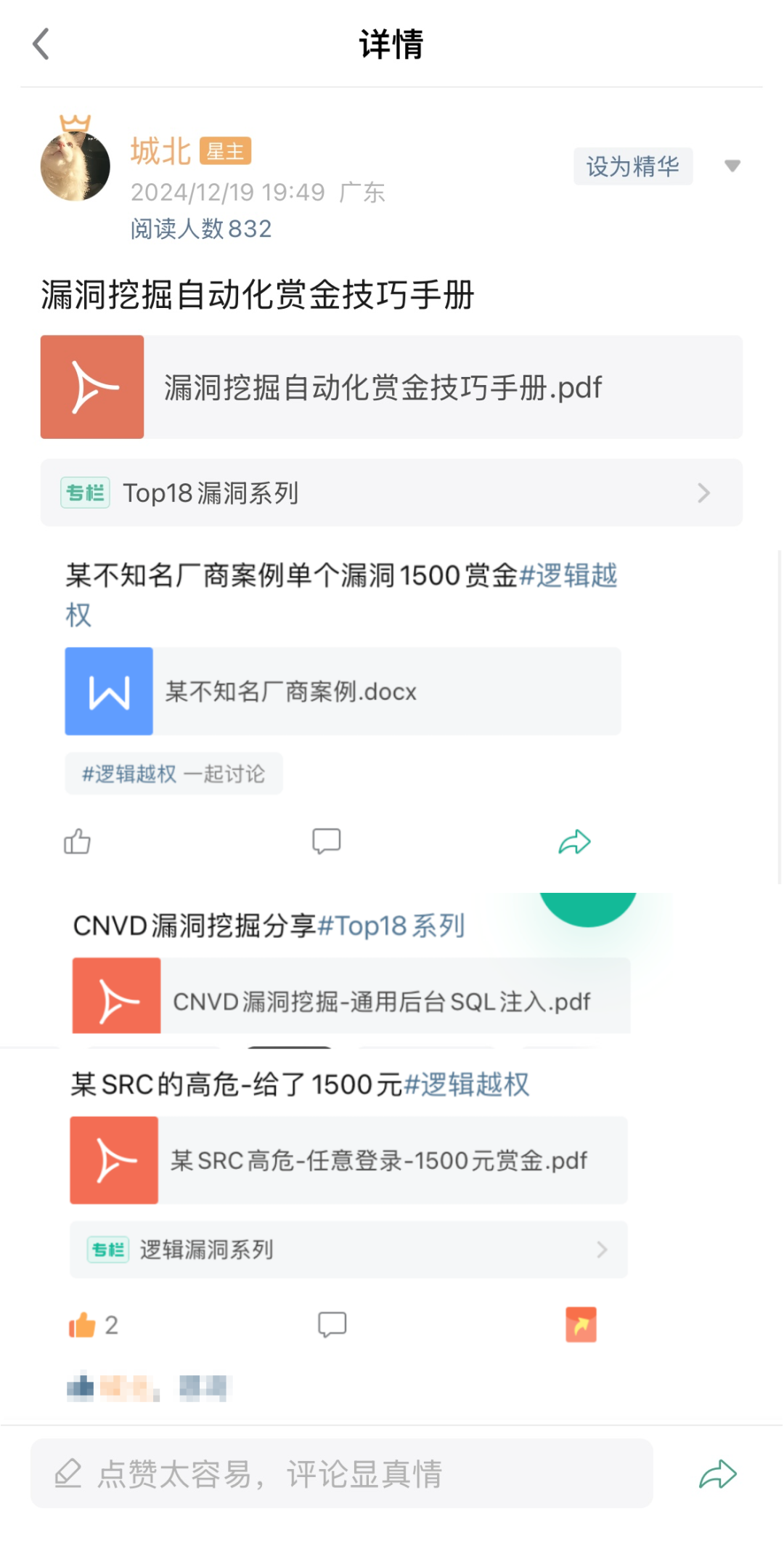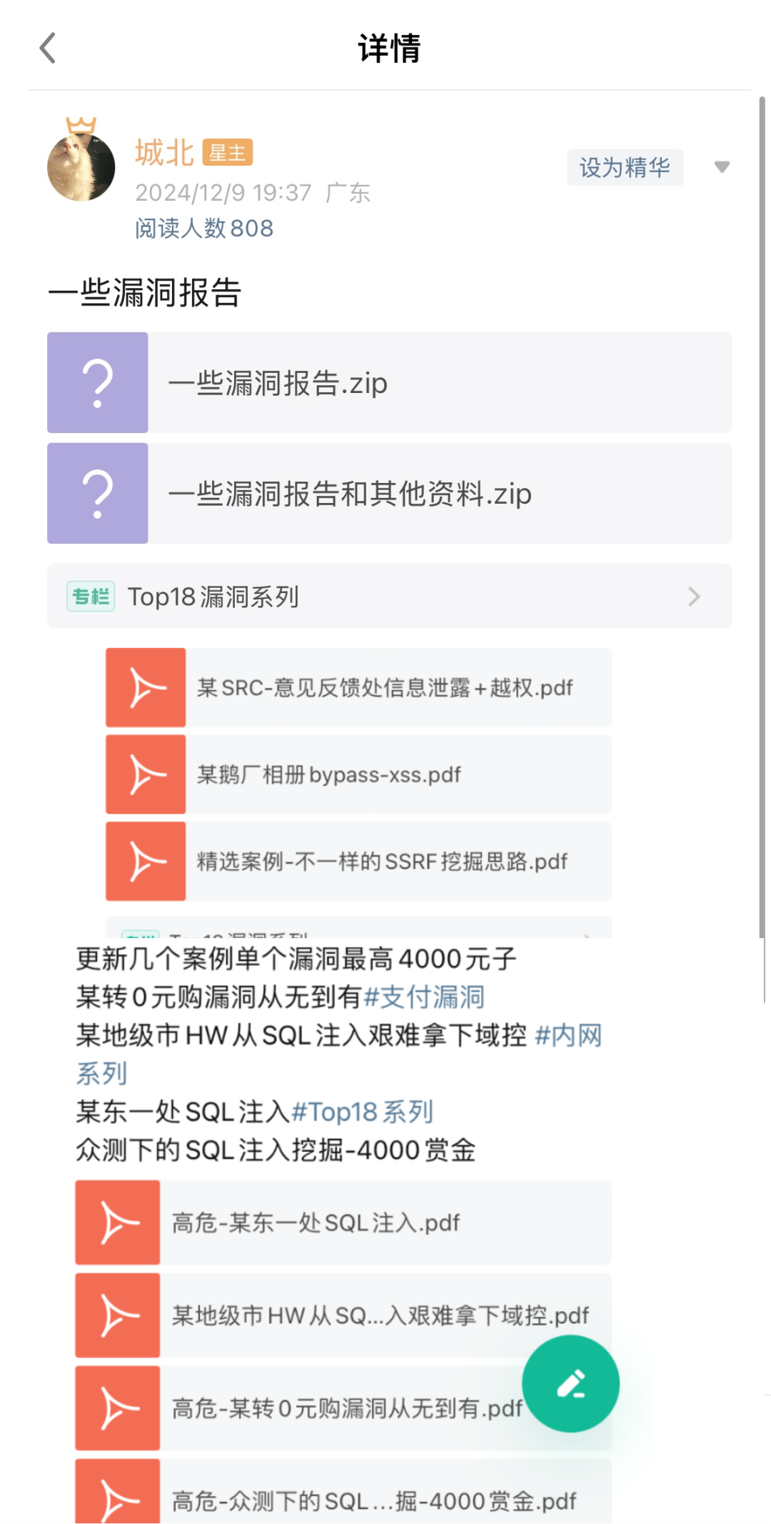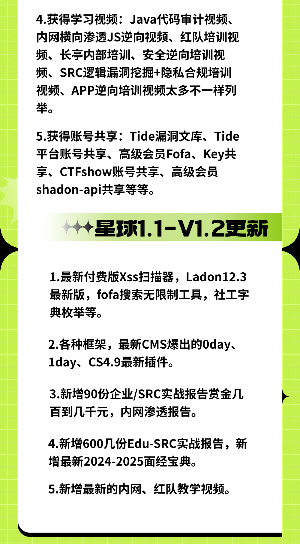 师傅们入股我的星球绝对不亏,几十块钱能学习到很多东西,闲鱼,淘宝卖src,edu报告都几十元几百元一份而且还不更新,还有卖各种工具的,有卖fofa,quake账号的几十元一个月,而我这边除了包含这些之外还有其他资源,别的星球没有的我这里会有,别的星球有的我这边也会有(1500多位师傅的选择)。
