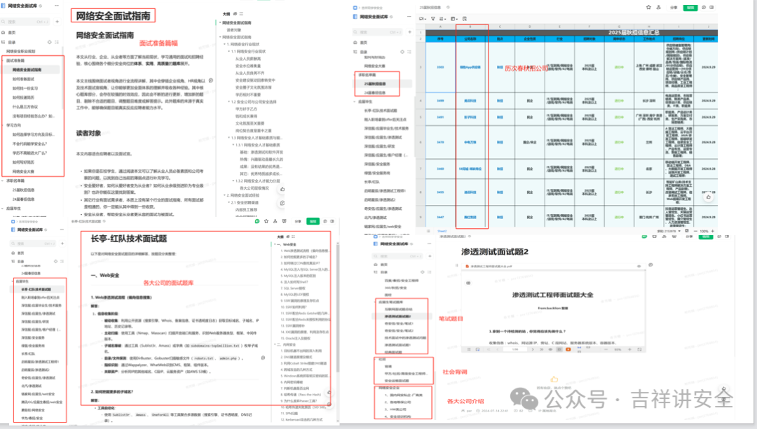 网络安面试题库截止目前已更新51篇,近13w字,里面包含了网安的职业规划、面试准备篇幅、学习方向、求职名单、应届生面试题库、应届生笔试题库、国内外安全企业介绍、以及社会背调等。15w字的面试经验