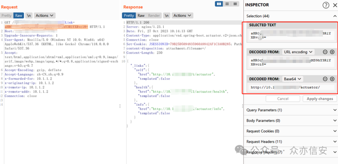 路径组成,然后通过某个actuator漏洞泄露的内网地址进行base64加密可成功全回显
