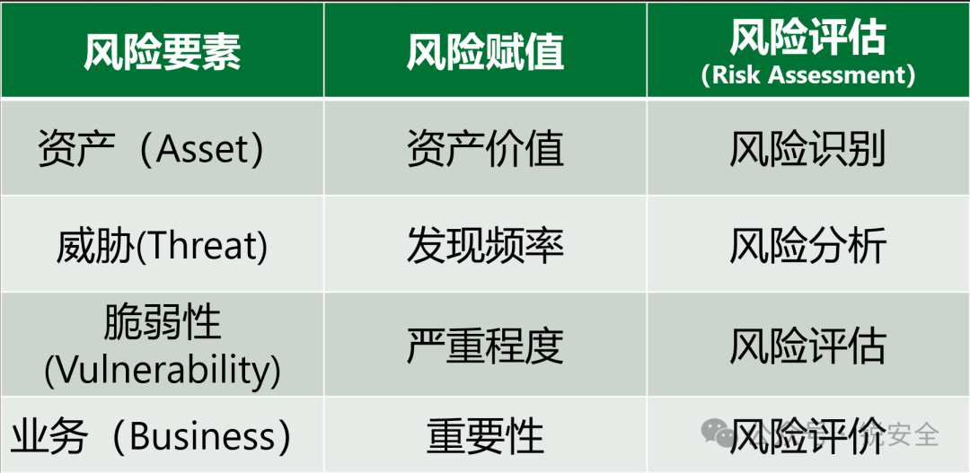 就是识别出风险要素、对风险要素进行赋值,然后进行风险评估的过程。