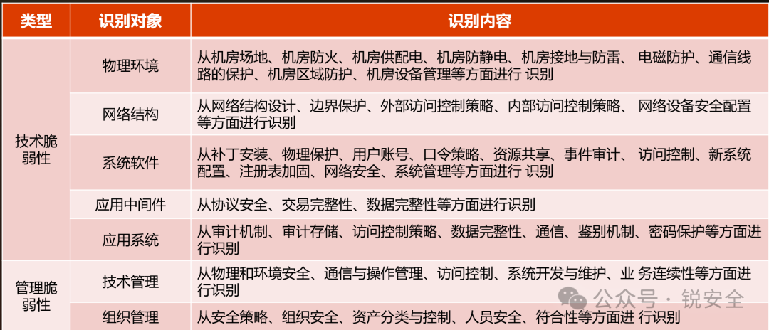 脆弱性识别分为:技术脆弱性和管理脆弱性两大部分。