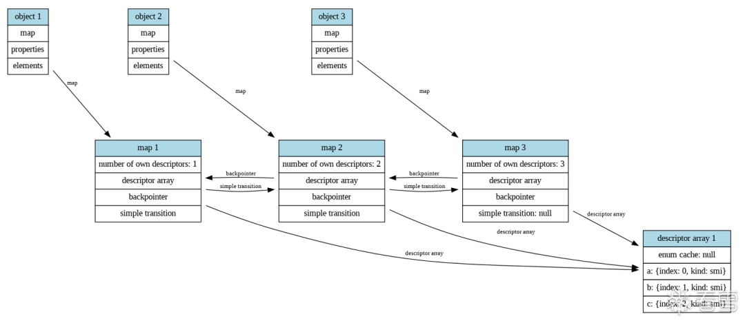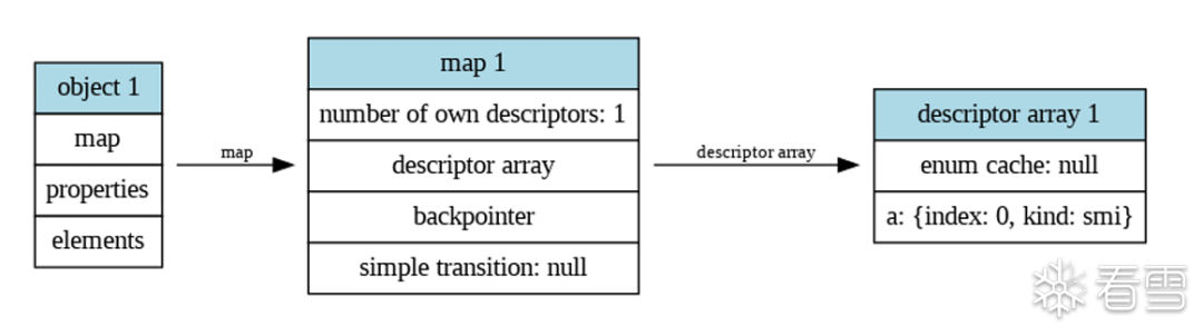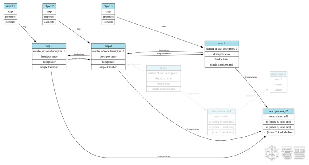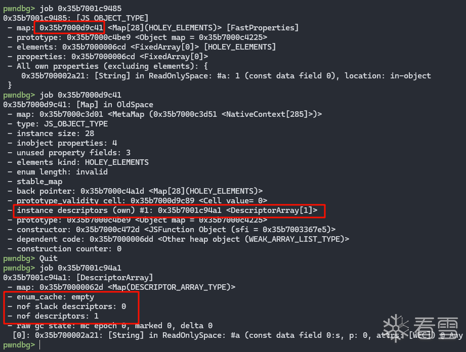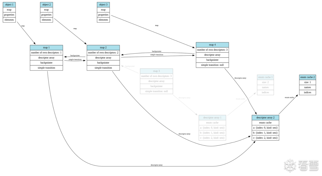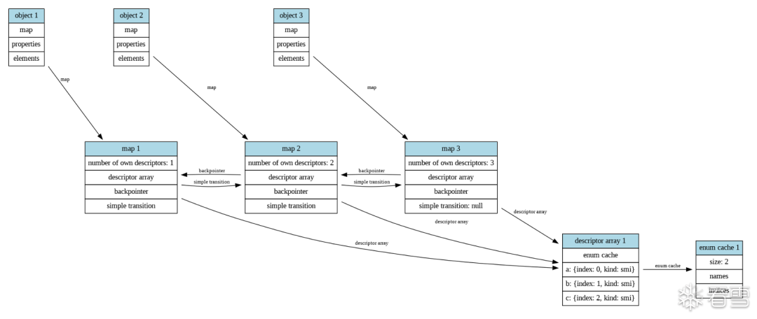 不难从下图看出,enum cache所在的位置,object -> map -> DescriptorArray -> enum_cache