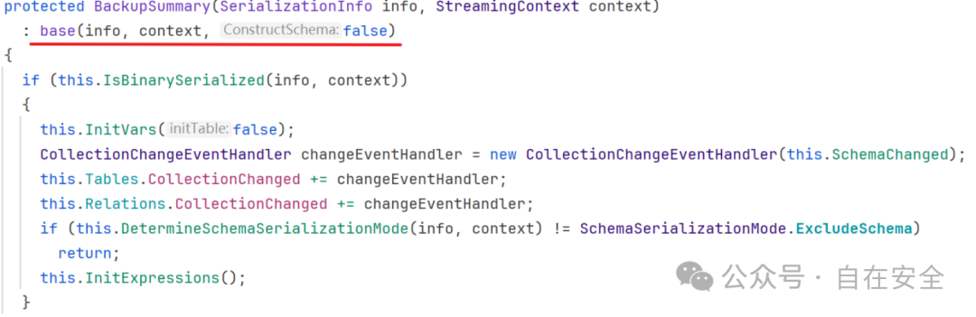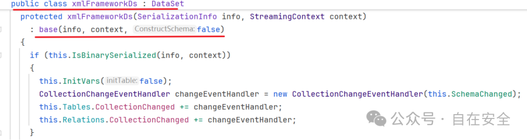 xmlFrameworkDs 和 BackupSummary 类构造函数会调用父类 DataSet 构造函数,但是 CDataSetSurrogate 不会,因此 xmlFrameworkDs 和 BackupSummary 作为 gadget 也可以触发 RCE :