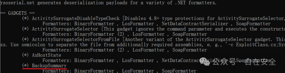 可以尝试在 ysoserial.net 中新增生成 xmlFrameworkDs 或者 BackupSummary 类的 gadget 生成代码。重写 GetObjectData 函数,将 assemblyName 和 FullTypeName 设置为合法值即可