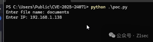 地址:https://github.com/0x6rss/CVE-2025-24071_PoC
